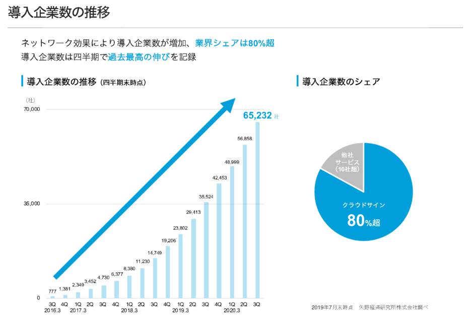 現時点ではクラウドサインの導入企業は順調に増加しており、順調なように見えます。