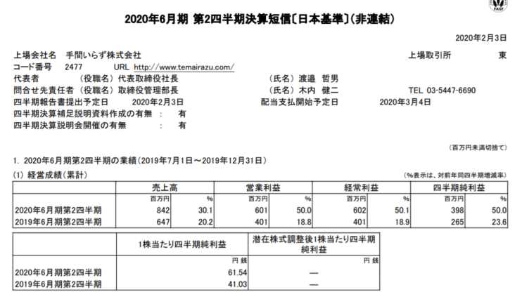 実際、手間いらずの業績は安定的に成長しており利益率も高いです。