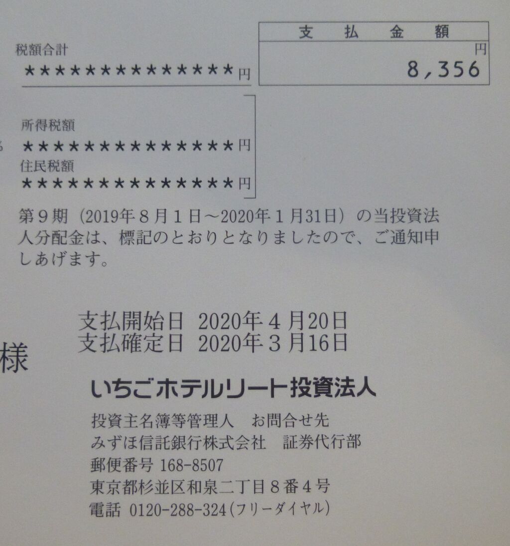 先日いちごホテルリート投資法人から配当金を受け取りました。