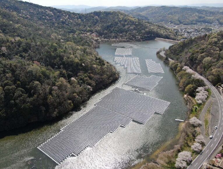 いちご笠岡尾坂池ECO 発電所は水上発電所です。