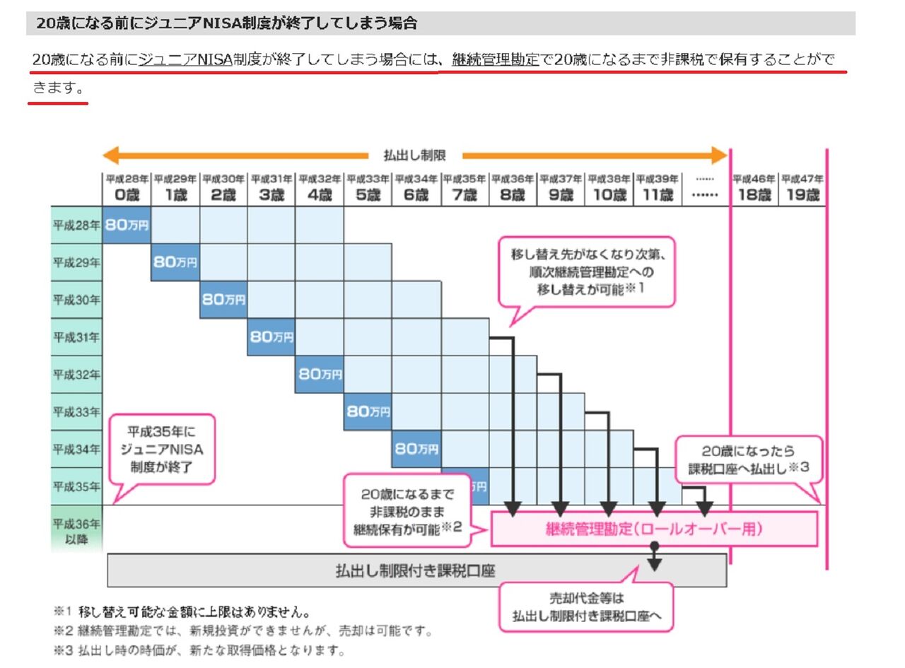 ジュニアNISAは制度終了後も継続管理勘定で非課税保有可能