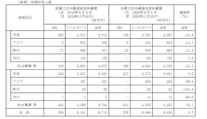 地域別に見ると、BtoB事業では米州の売上高が増加しており、BtoS事業では国内、アジア、米州が増加していますね。