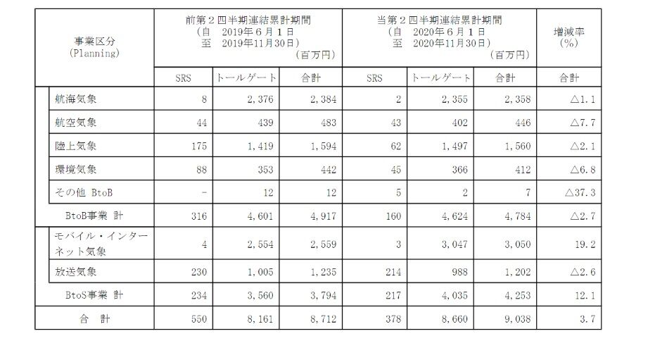 前述の通り、航海気象や航空気象などのBtoB事業はコロナ禍の影響により落ち込みました。