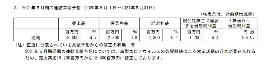コロナ禍により、営業活動の遅れが見込まれるためということです。
