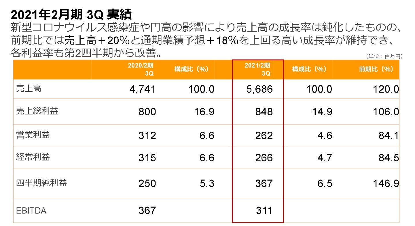 1月13日に【4434】サーバーワークスが2021年2月期第3四半期決算を発表しました。