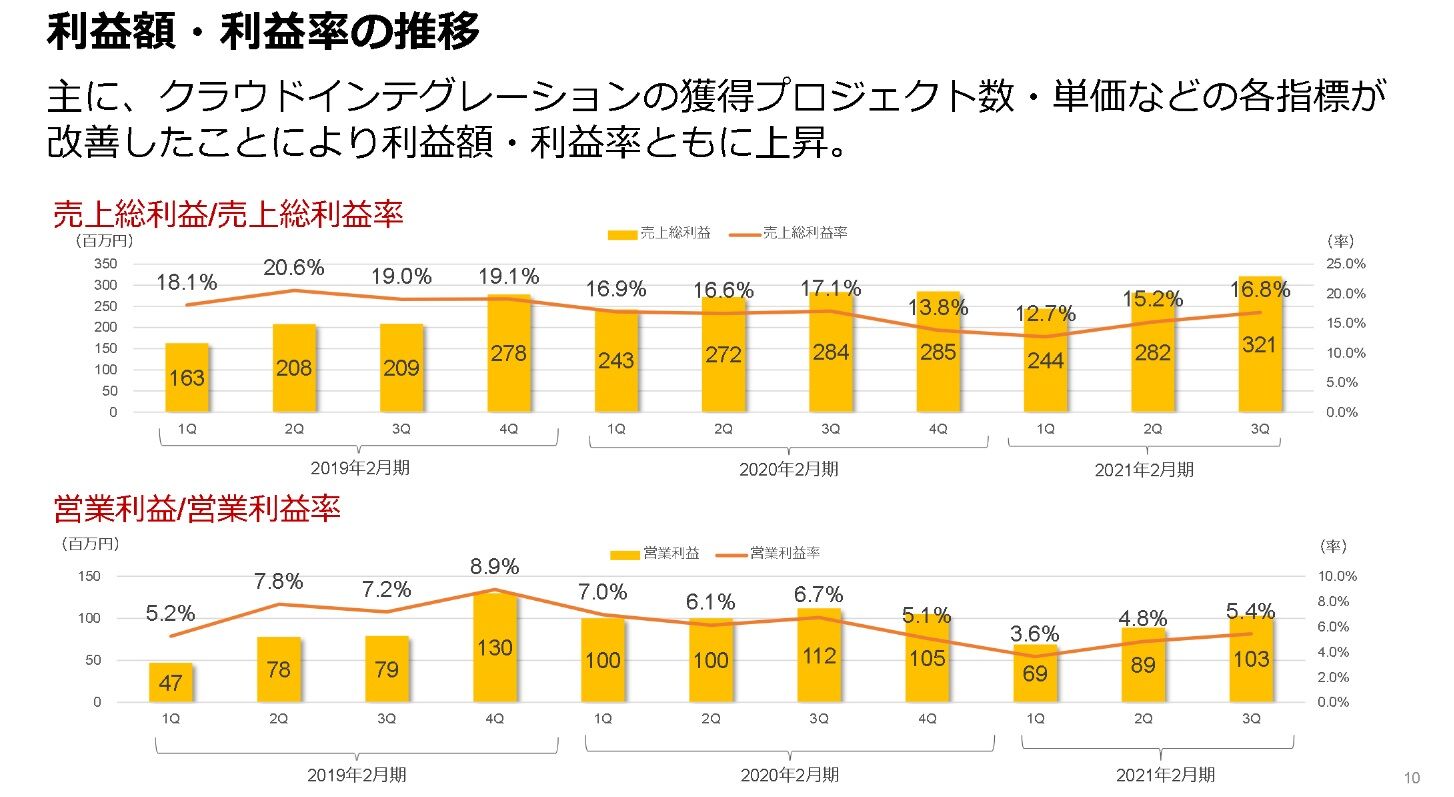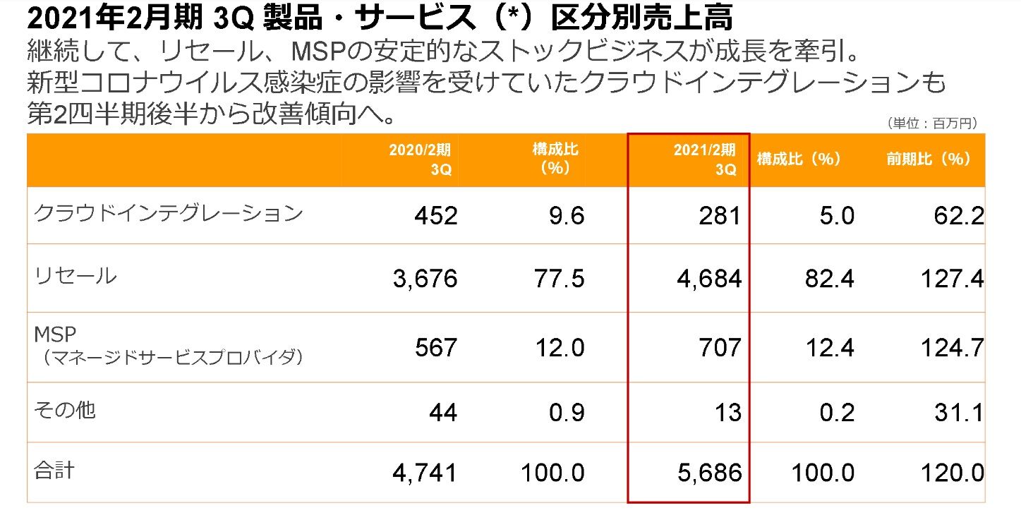前四半期から少し下落していますが、コロナ禍の影響で落ち込んでいたクラウドインテグレーションの売上が第3四半期に回復しているためです。