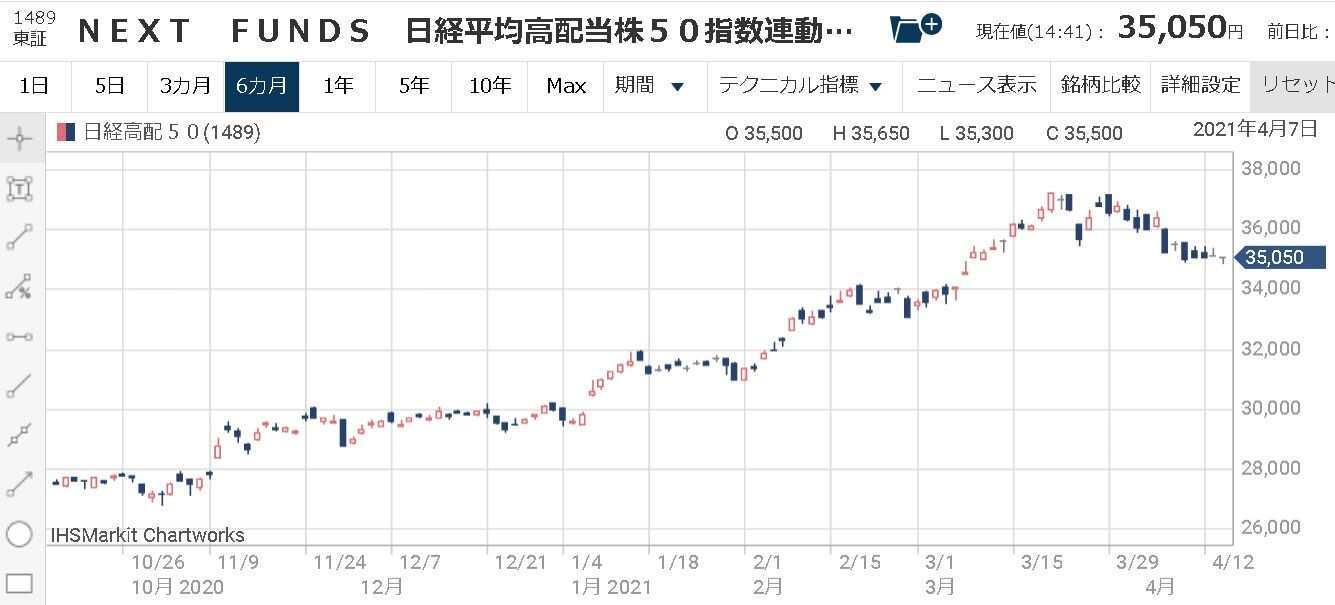 昨年後半からバリュー株が買われ出したこともあり、日経高配当株50ETFの株価も堅調になっています。