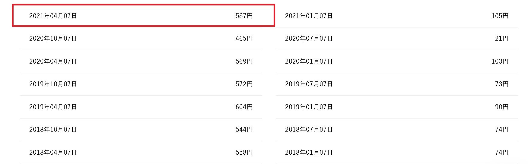 昨年の4月は569円でしたので、3%の増配です。