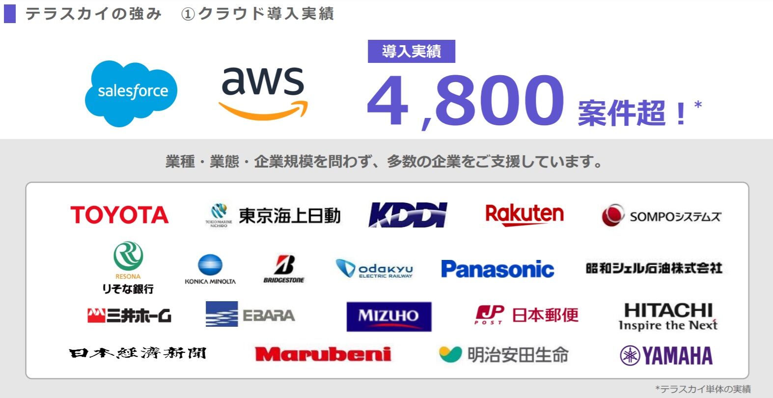 テラスカイはセールスフォースやAWSなどのクラウド導入支援を行っている会社です。