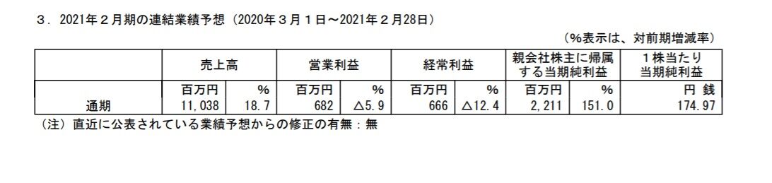 従前の会社予想値は下記のとおりですので、事前の会社予想を超えてきましたね。