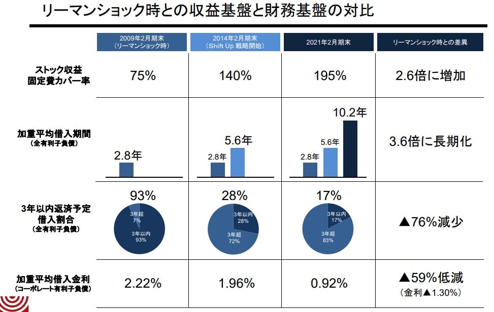 固定費カバー率(ストック収益が固定費のどの程度あるのか示す割合)は195%と約2倍となっています。