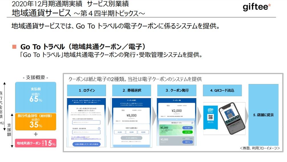 前期に地域通貨サービスが急拡大がした大きな要因はGoToトラベル事業にかかるシステム提供を行ったためです。