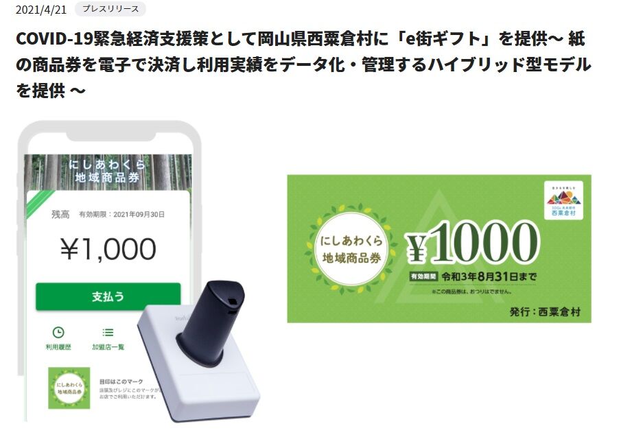 ギフティが岡山県西粟倉村にe街ギフトを提供すると発表しました。