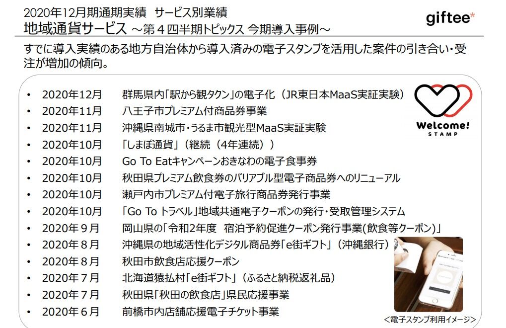 下記の通り、前期に多数の自治体で地域通貨サービスが導入された成果が出始めているのでしょうか。