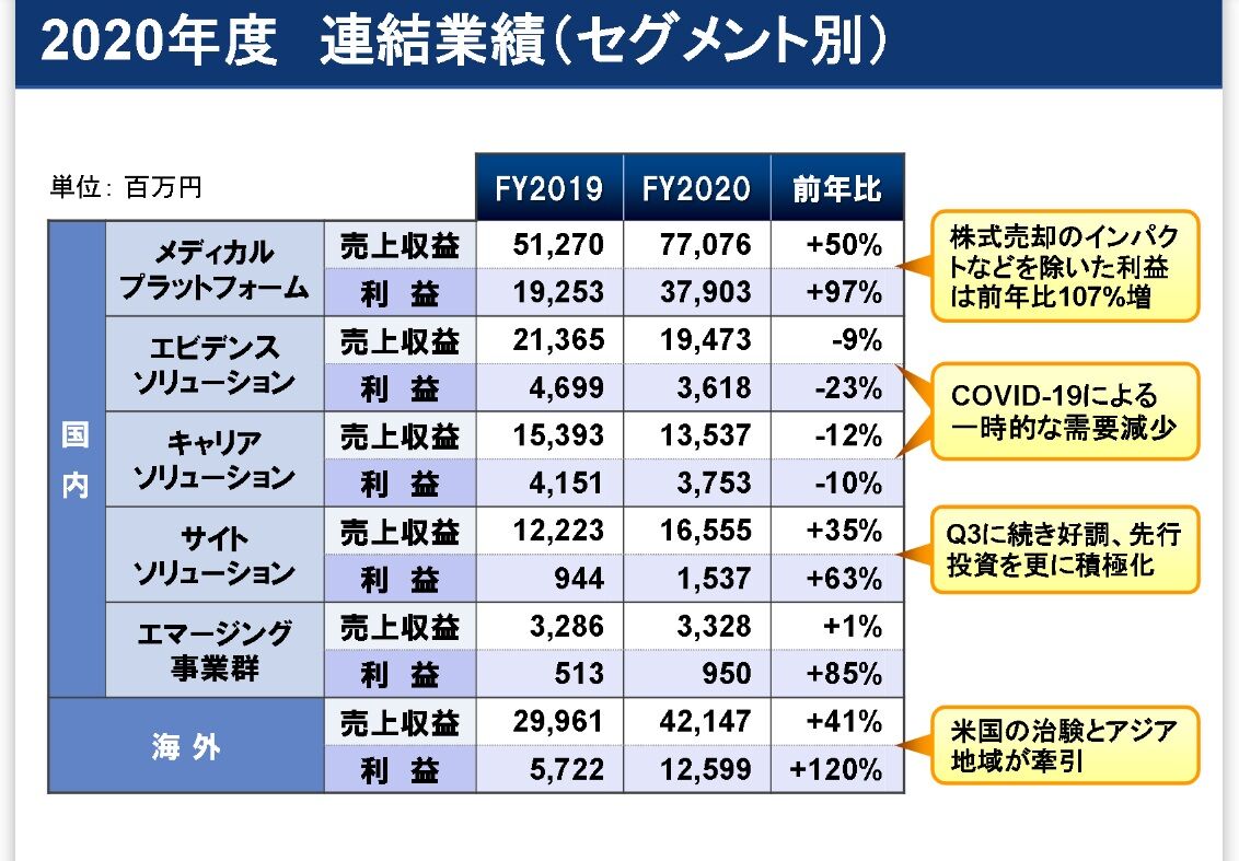 エムスリーの2021年3月期本決算は大幅増収増益となりました。