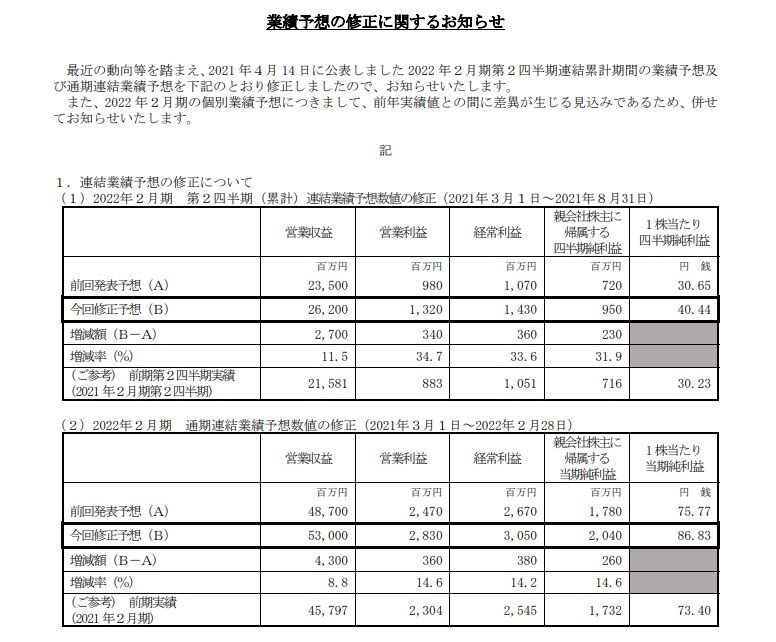 前期がコロナ禍の影響で大幅に業績が悪化した反動というわけでもありません。