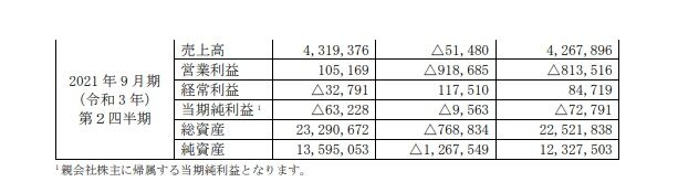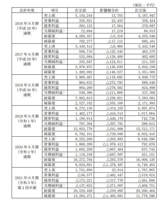 最終的には10月15日第3四半期決算が発表されましたが、過去の決算を含めた不正会計が発覚し決算を訂正しています。