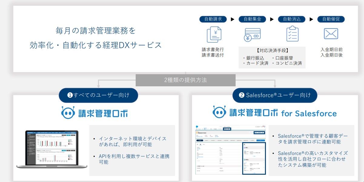 請求・集金・消込・催促といった業務を自動化するDXサービスです。