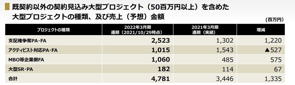 増収率が低くなった理由は上記のとおり、コロナ禍によるアクティビスト活動などの緩和によるものと、資産売却などの大型案件が期ずれしたことによるものです。