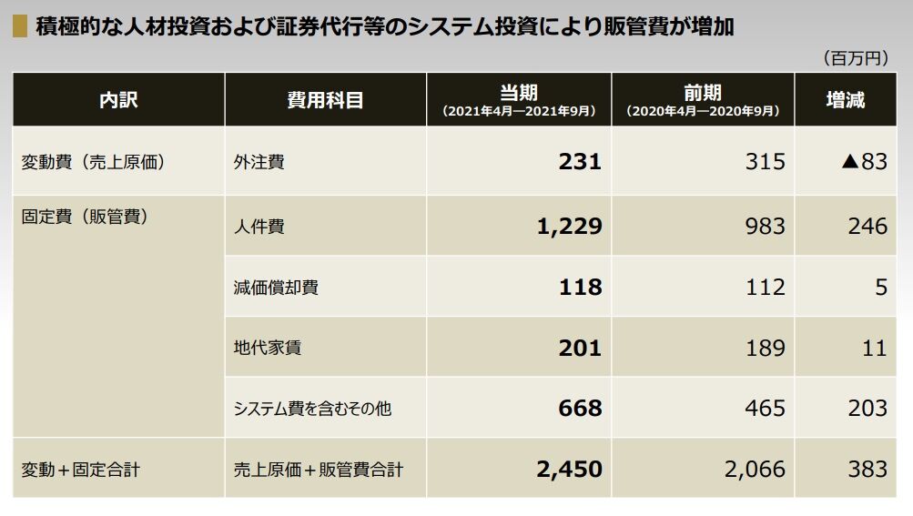 減益要因は販管費の増加