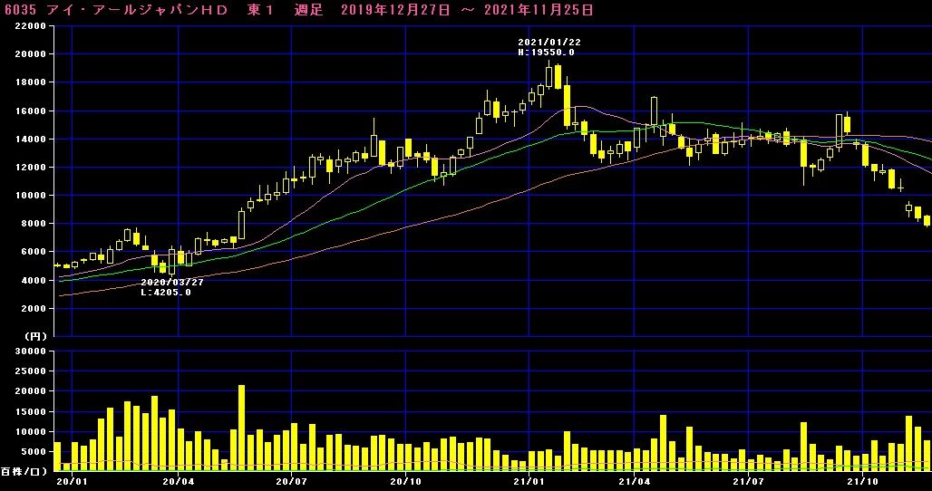 数字だけみるとめちゃくちゃ悪いわけではありませんが、IRJは一時はPER100倍を超えるような成長株として市場から見られていたので、失望をよぶ決算となりました。
