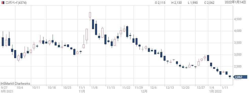 ROBOT PAYMENTの上場以降の株価チャートです。