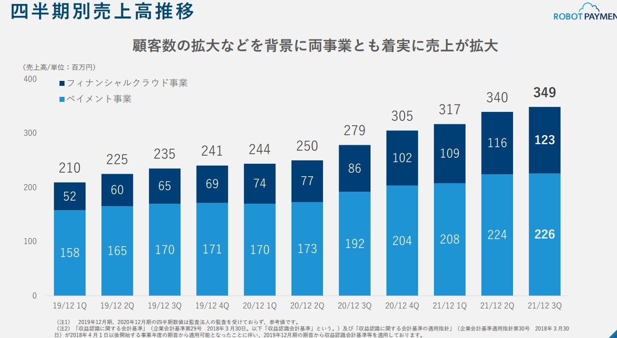 ペイメント事業、ファイナンシャルクラウド事業ともにお金の流れに関する部分ですので、簡単に変更(解約)はされないと言う点もROBOT PAYMENTの強みですね。