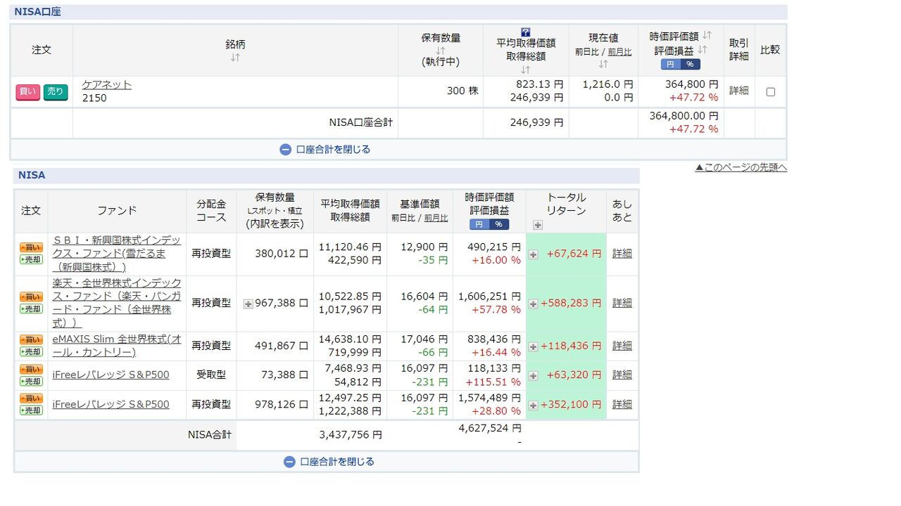 コスト面を考えての切り替えですが、既に購入済みの楽天VTは非課税の恩恵をフル活用するため売却は考えていません。