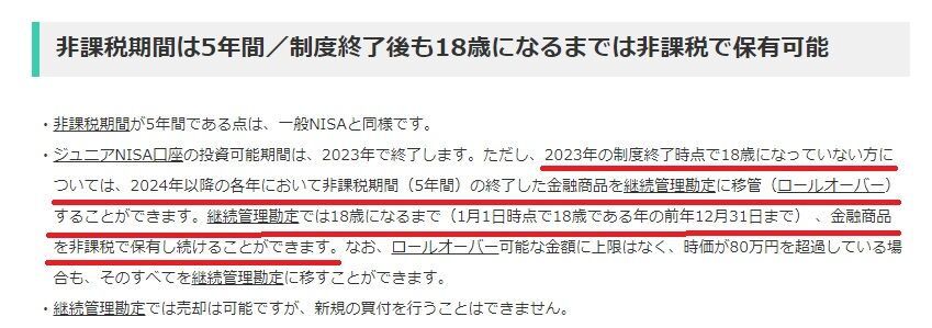 ただ、終了時点で18歳になっていない場合は、18歳になるまで継続管理勘定にて非課税で保有を続けることが可能です。