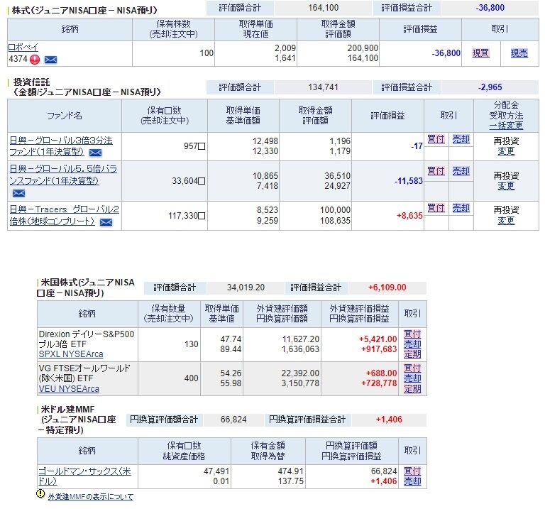 株高の恩恵を受けて、第2子のジュニアNISA口座も500万円を突破。