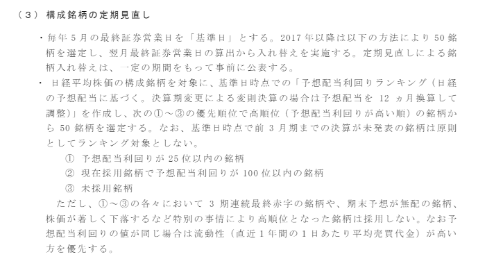 さて、【1489】日経高配当50ETFの銘柄入れ替えルールは上記の通り。