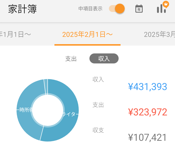 2月の収入額は431,393円となりました。内訳です。