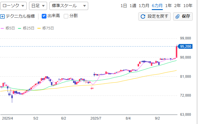 直近六ヶ月の株価チャートは上記のとおり。