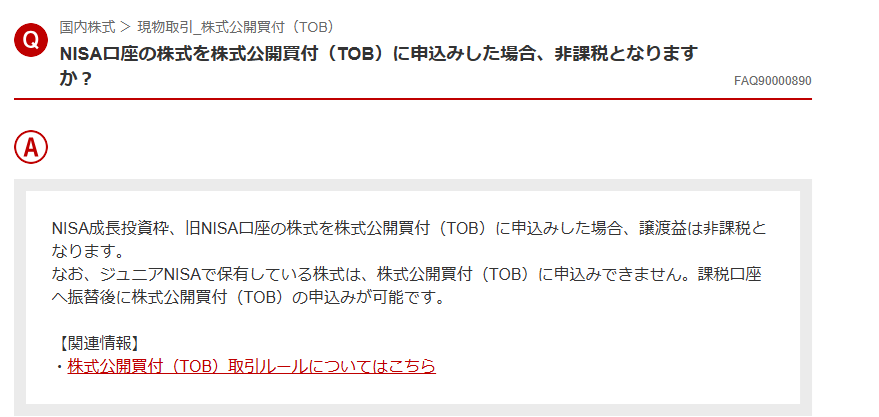 なんと、ジュニアNISA口座で保有している株式はTOBに申し込みできないことが判明しました。