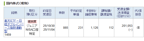 ご覧のとおり、楽天ETF日経ダブルインバースを購入しました。